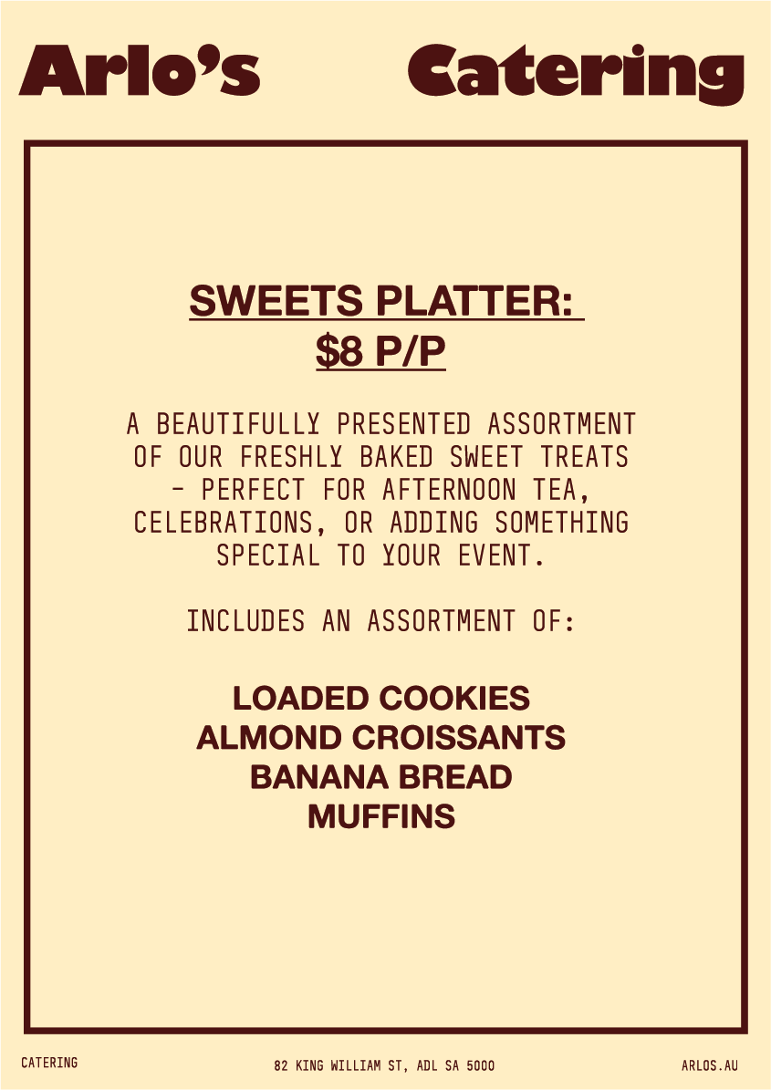 TO PLACE AN ORDER, PLEASE EMAIL US AT ADMIN@ARLOS.COM OR CONTACT US DIRECTLY ON (08) 7123 3798